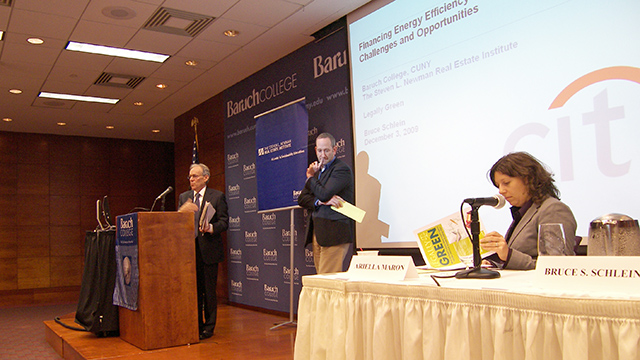 At this conference, speakers looked down the road toward complying with the new laws and then beyond compliance to achieving an energy efficient competitive edge. Legally Green was co-sponsored by the Newman Real Estate Institute, Baruch College, CUNY and the Sallan Foundation. Since Legally Green was a standing room-only morning, it's clear that the topic and the timing were just right.